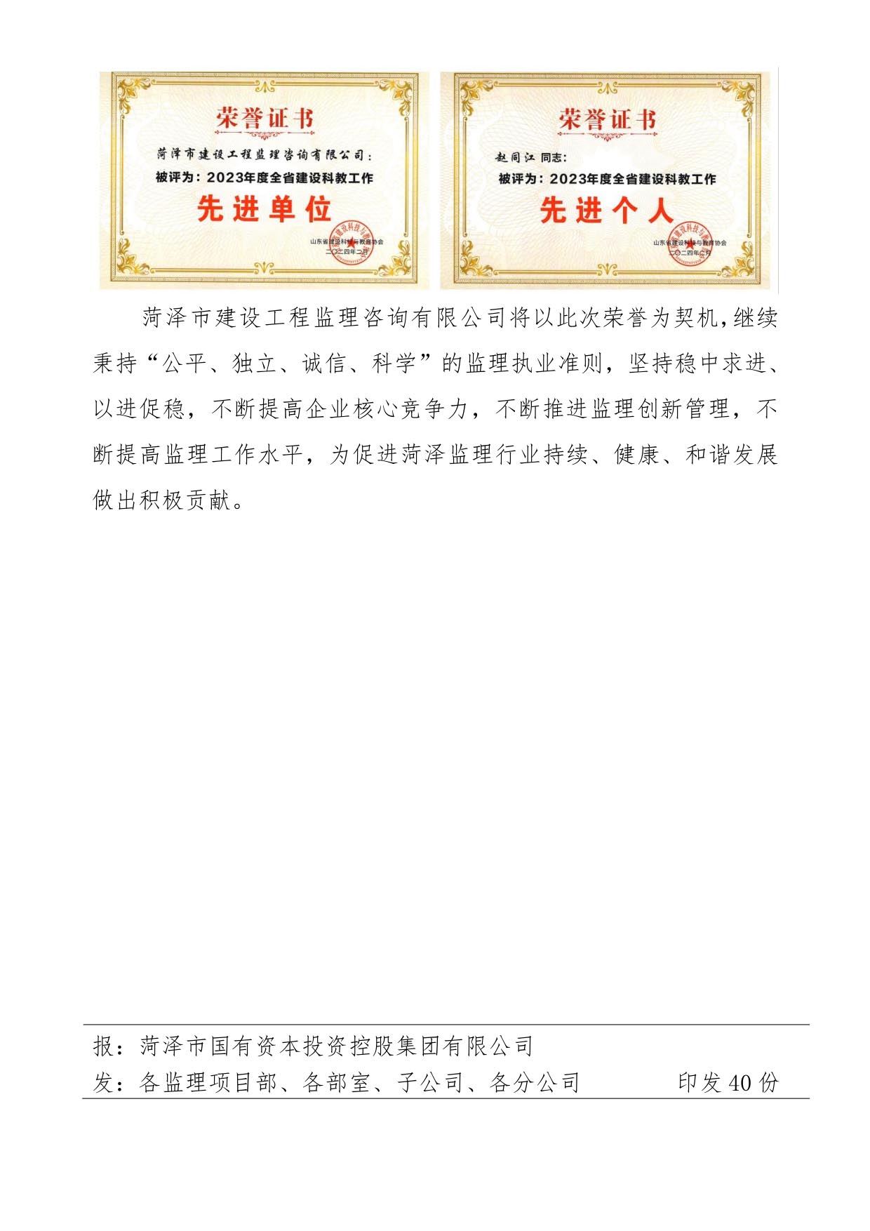 菏澤市建設(shè)工程監(jiān)理咨詢有限公司簡(jiǎn)報(bào)(101) 2024-5-16 本文被閱讀 654 次