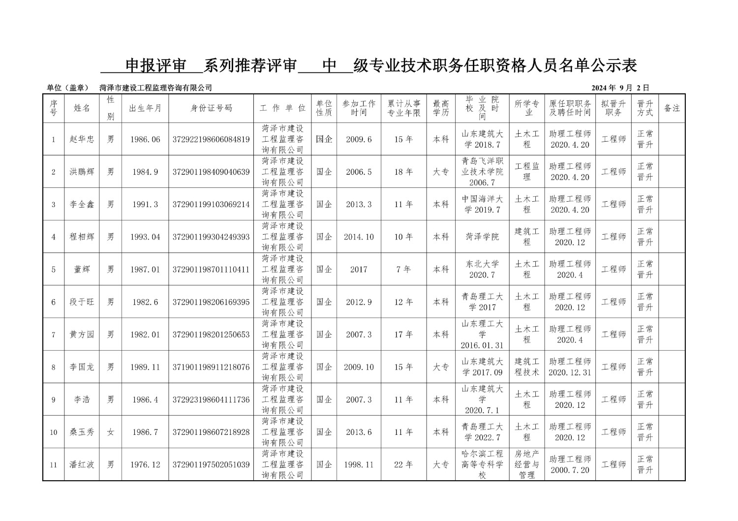 | 上一條:2024年申報(bào)評(píng)審系列推薦評(píng)審初級(jí)專業(yè)技術(shù)職務(wù)任職資格人員名單公示表 | 下一條:菏澤市建設(shè)工程監(jiān)理咨詢有限公司 2025年度崗位考核工作圓滿收官 |