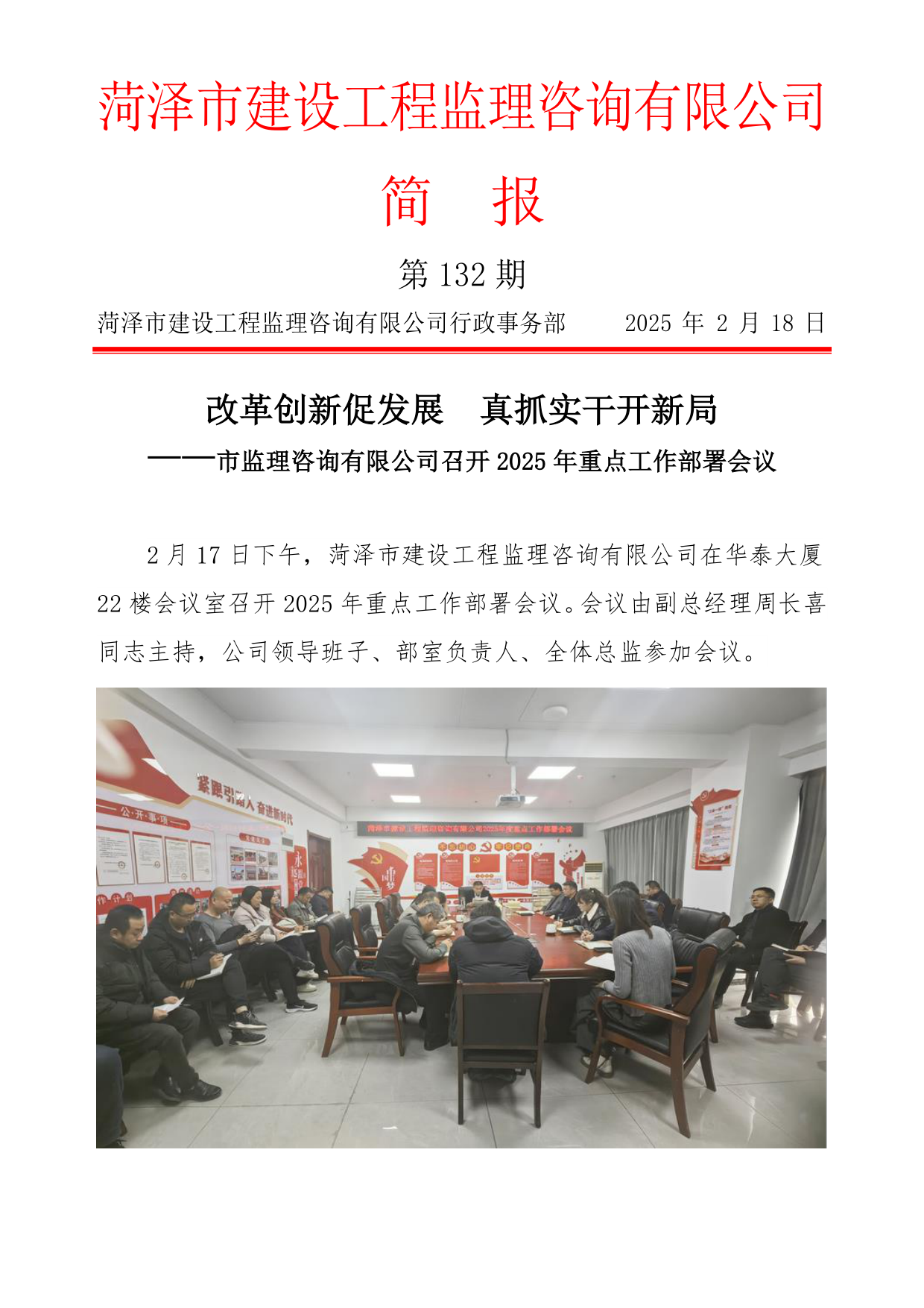 菏澤市建設(shè)工程監(jiān)理咨詢有限公司簡(jiǎn)報(bào)(132) 2025-2-19 本文被閱讀 327 次