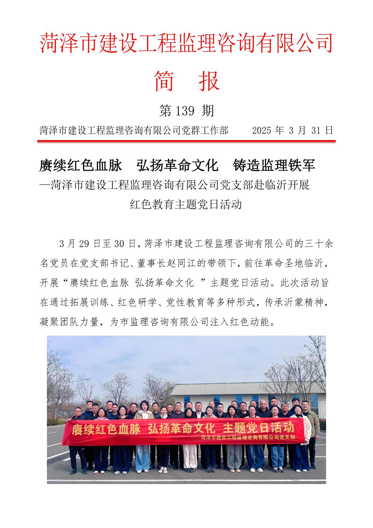 菏澤市建設(shè)工程監(jiān)理咨詢有限公司簡報(bào)(139) 2025-4-2 本文被閱讀 222 次